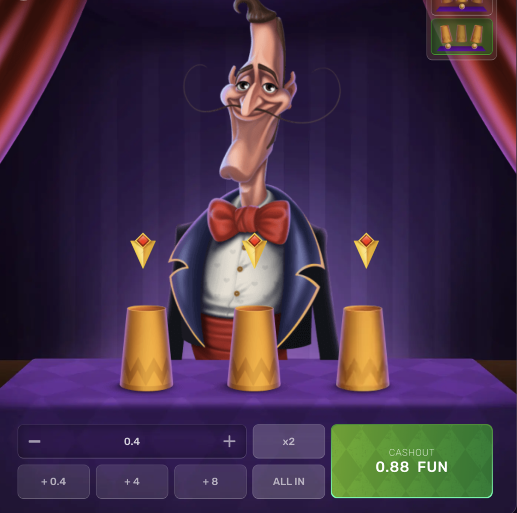 - O jogador deve adivinhar em qual copo o dedal está escondido.